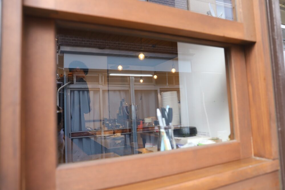 メニューは通年で、ホットもアイスも用意。小窓からスイーツも含めテイクアウトも可能です。取材に訪れた日には、表を通りがかる近所の小学生の姿が。小さな窓から身を乗り出すように声をかけ「友達です。」と紹介してくださいました。