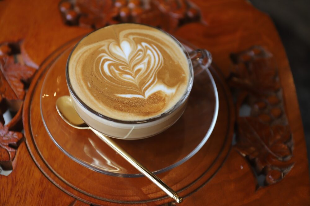 都内のコーヒー店で身に着けたというコーヒーのスキル。高東さんは、どんな工程にも真摯に向き合い、ひとつひとつの作業に決して手を抜きません。丁寧に仕上げられた「カフェラテ」の美しいミルクフォーム。