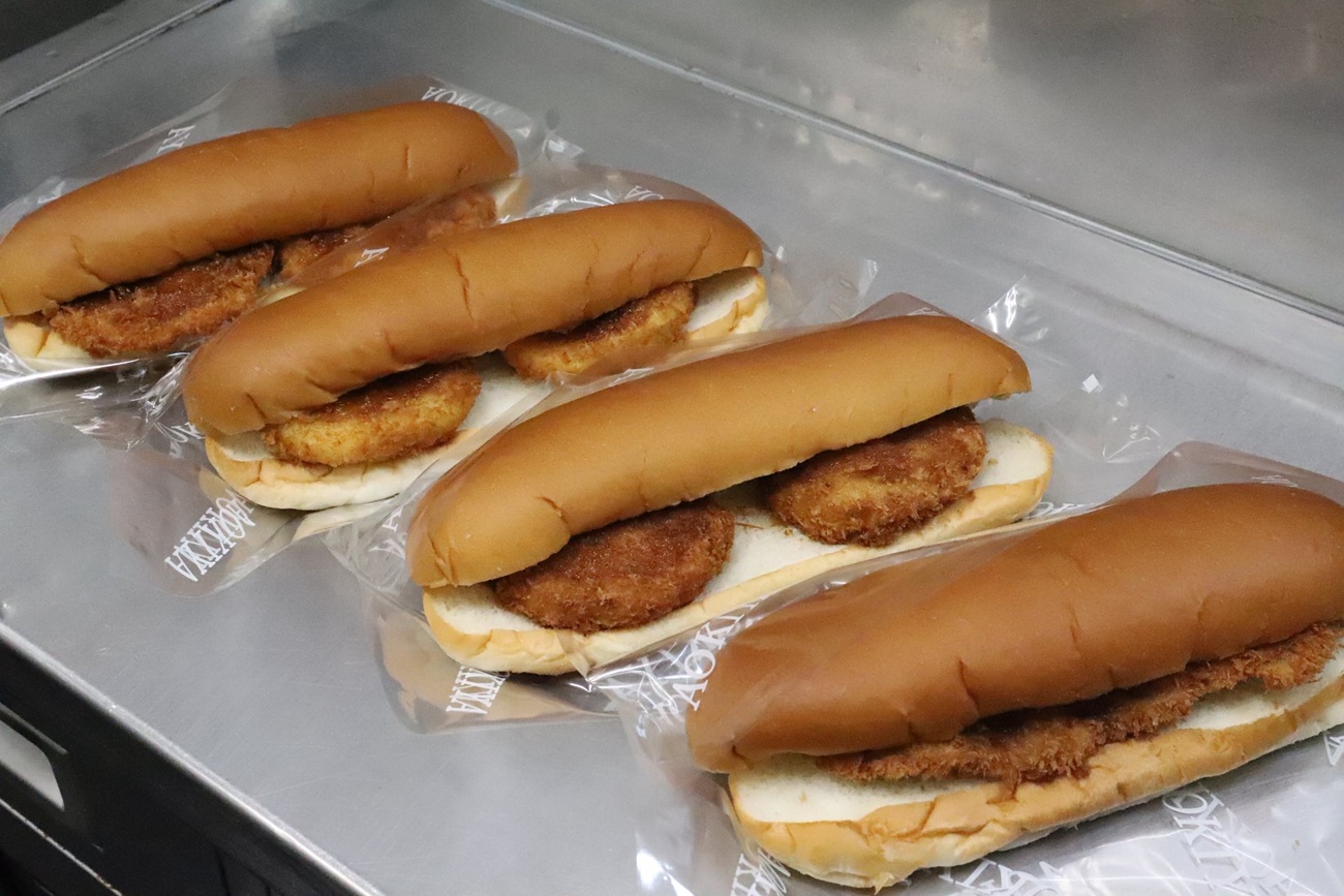 青木屋で取り扱うのは、ふわふわのコッペパンに揚げたてのコロッケなどを挟んだボリューム満点のお惣菜パン。コロッケに加え、メンチカツ、ハムカツ、トンカツと全4種を販売しています。