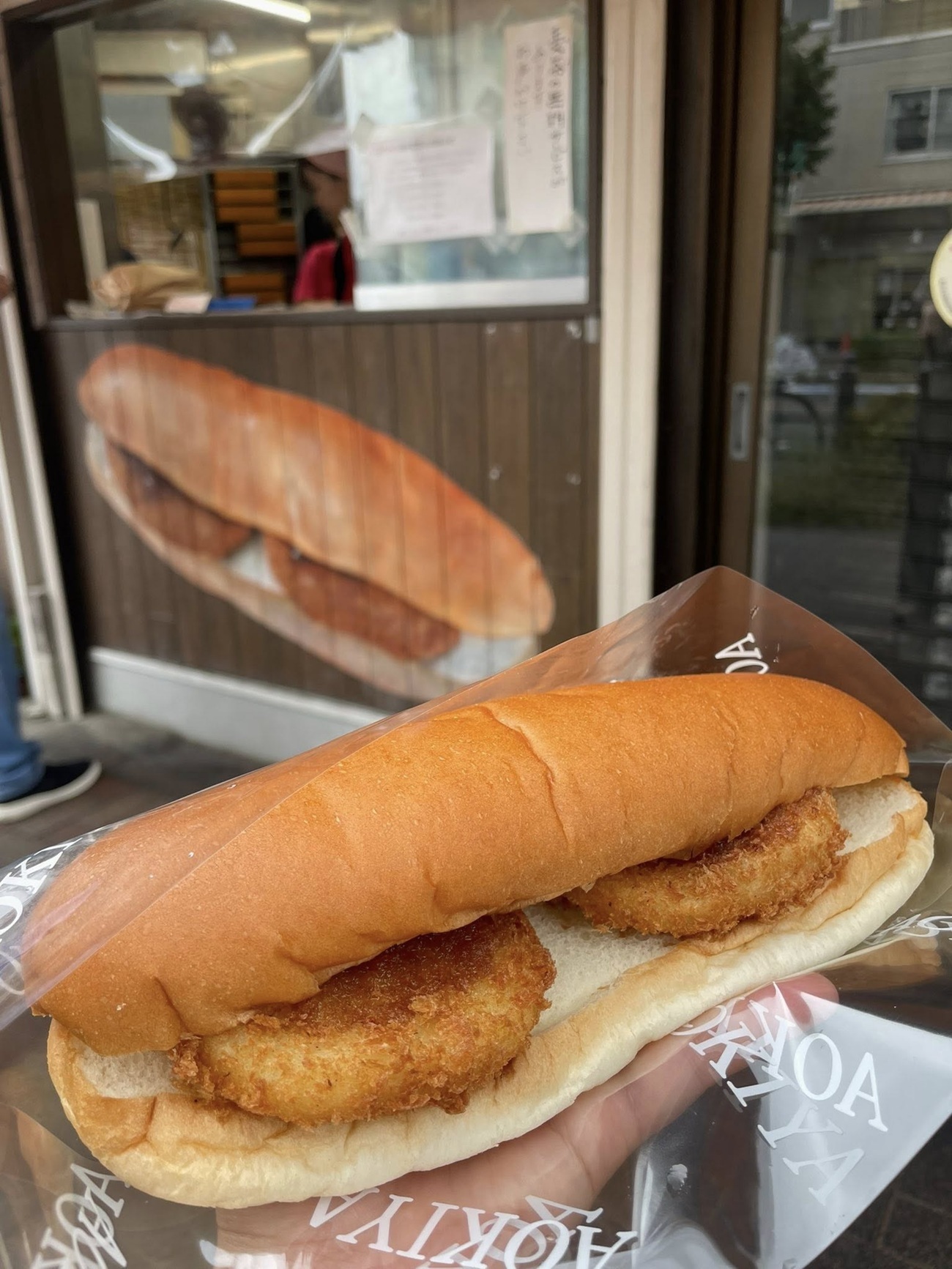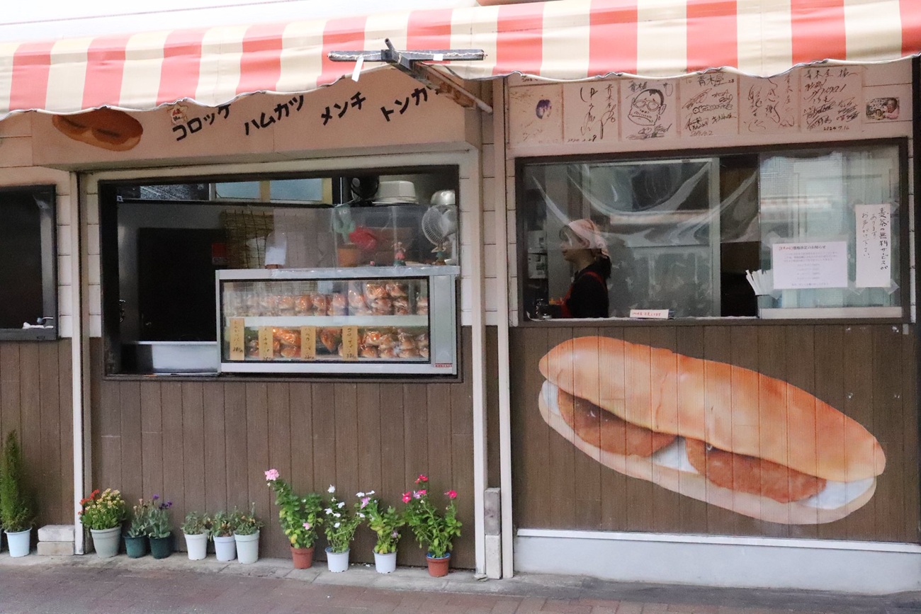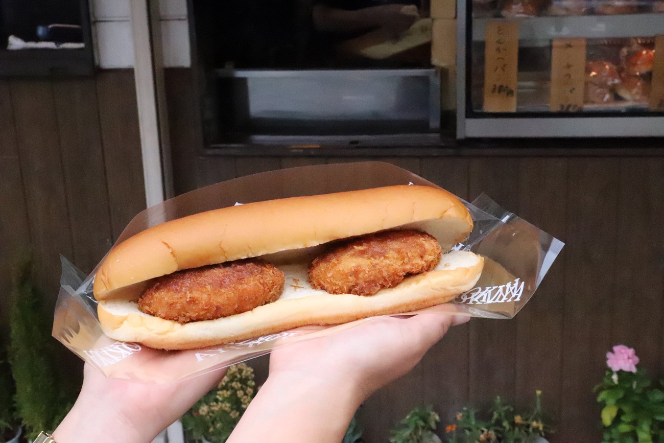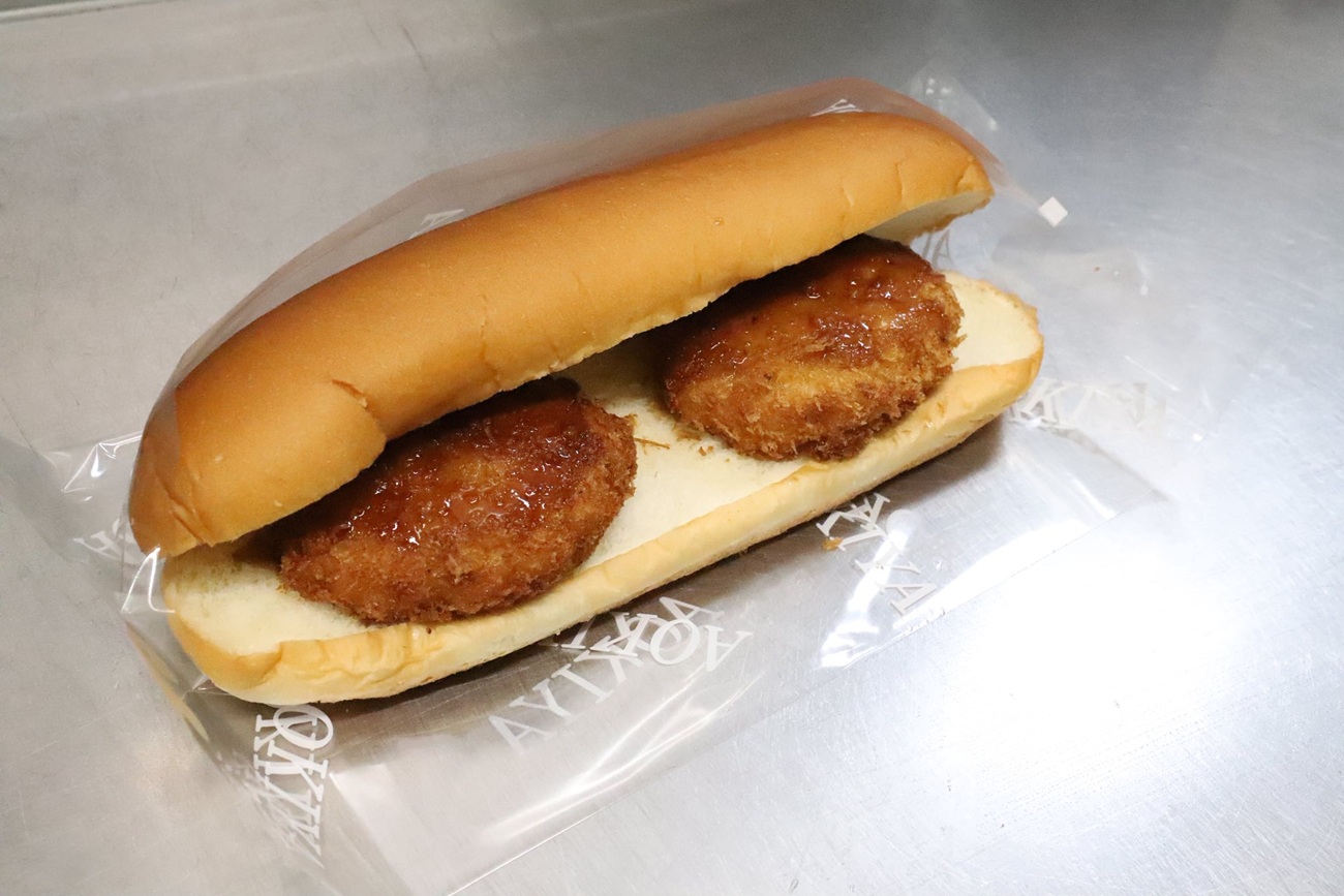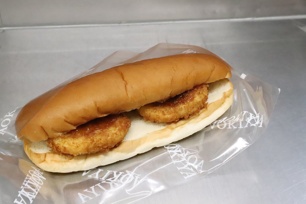 青木屋で取り扱うのは、ふわふわのコッペパンに揚げたてのコロッケなどを挟んだボリューム満点のお惣菜パン。コロッケに加え、メンチカツ、ハムカツ、トンカツと全4種を販売しています。