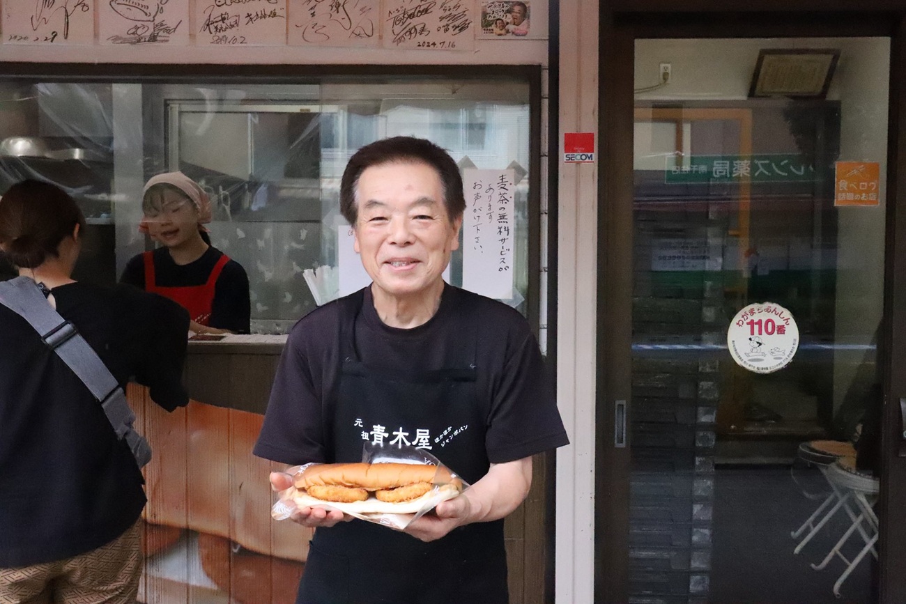 青木屋はもともとお惣菜や乾物を扱うお店。後に、販売していた惣菜をパンにはさんで販売するコッペパンが主力の商品となっていきました。幼い頃から商売を近くで見て育った健志さん。大学を卒業後は会社勤めを経験しますが、妹さんの結婚などを機にご自身がお店を継ぐことを決意したそうです。