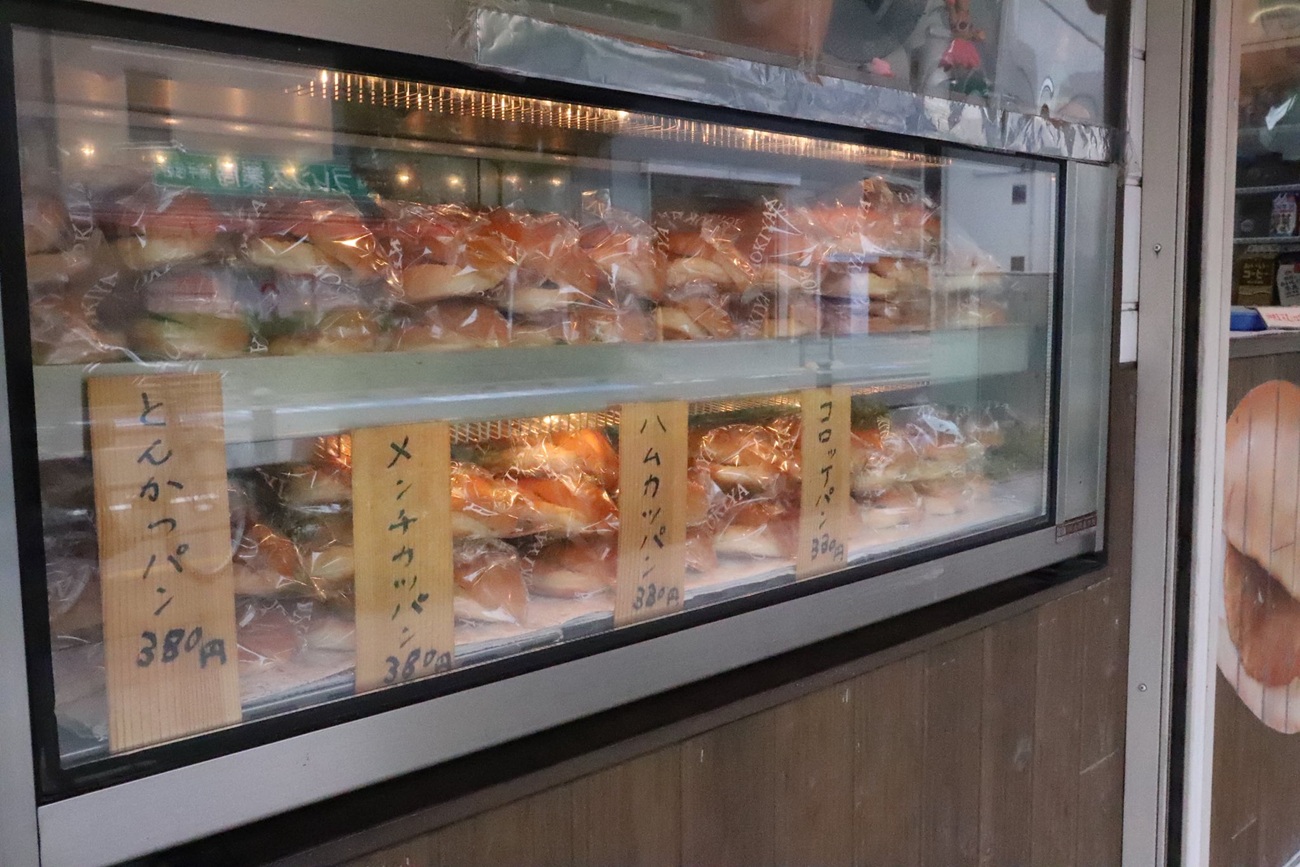 その他全ての商品の具材が2つずつであるのに対して、トンカツパンだけは1枚のみが豪快に乗せられた品。昔からお付き合いのあるお肉屋さんに「このくらいの長さで」と、お願いして注文しているそうです。薄いバラ肉が層になったやわらかいトンカツは、ソースとの相性も抜群!歯の弱いお子さんやお年寄りでも安心して食べられます。