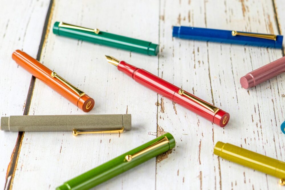 日興エボナイト製造所は、国内唯一のエボナイト製造工場を持つ会社。 エボナイトは、天然ゴム原料の硬質 ゴムとして、万年筆や木管楽器、パイプの素材として使用されてきました。戦後、石油系プラスチックの普及により需要が激減しましたが、日興エボナイトは、オリジナル・ブランドづくりに取り組み、カラーマーブルエボナイトを使用した万年筆・ボールペンの製造・販売を開始した。その不思議な美しさが注目を集め、世界中のペン愛好家から賞賛、愛用されています。
