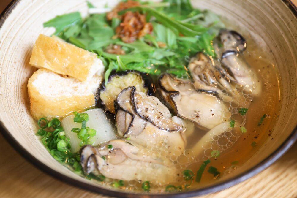 その象徴的な一品が、『冬季限定の牡蠣うどん』です。