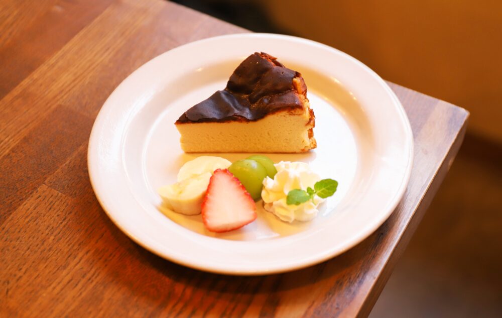 バスクチーズケーキ550円(税込)※店内飲食価格 しっかりとしたコク、 濃厚な味わいでコーヒーとの相性も抜群。