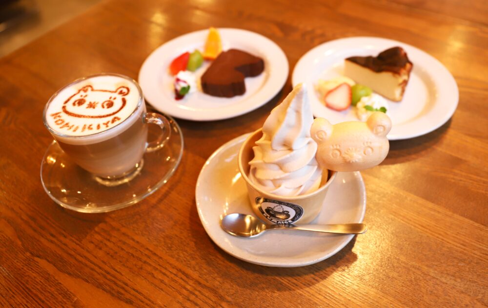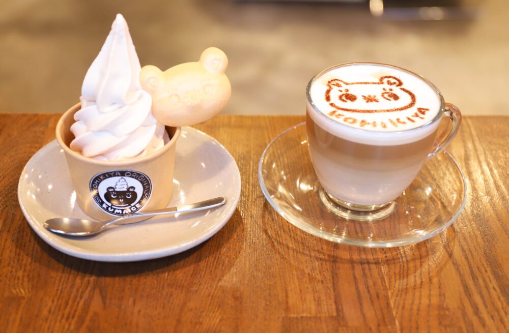 オリジナルキャラクター「くまっぺ」が添えられた『くまいす(アイスクリーム)』や、くまっぺのイラストが描かれたカフェラテなどのオリジナルメニューも魅力のひとつです。