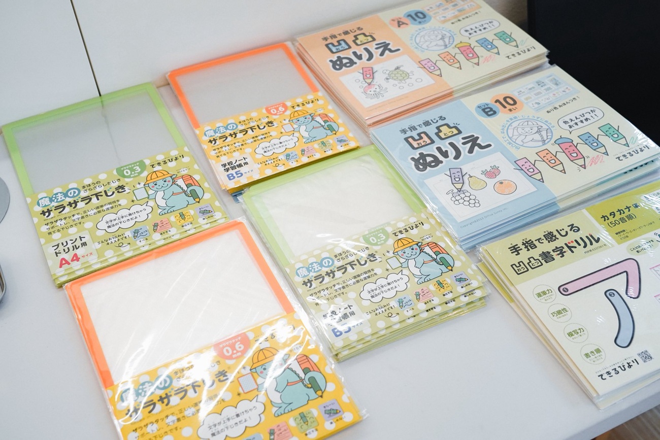 会場には、専門作業療法士による監修のもと開発した児童発達支援のオリジナル教材がズラリ。前回のイベントではお目にかかることのできなかった商品も登場していました。