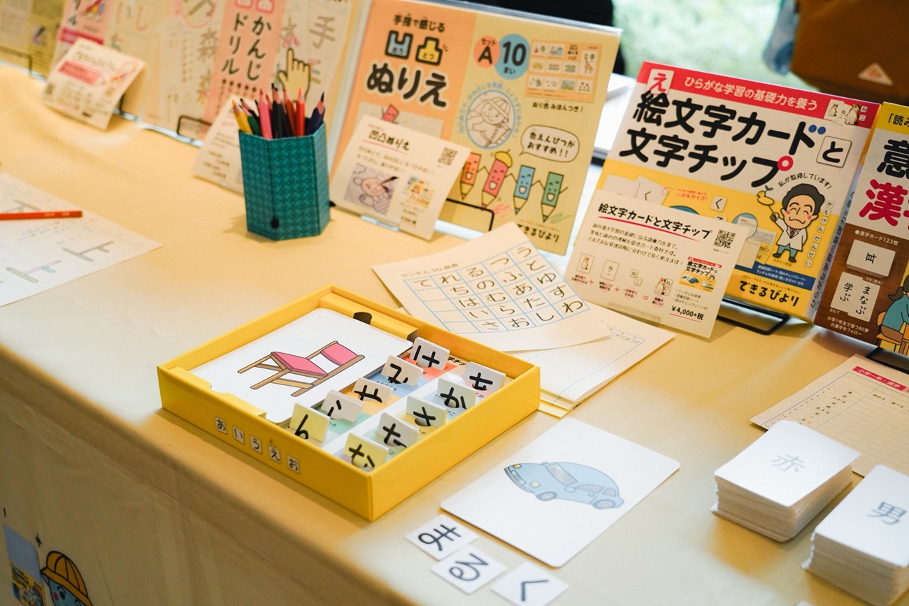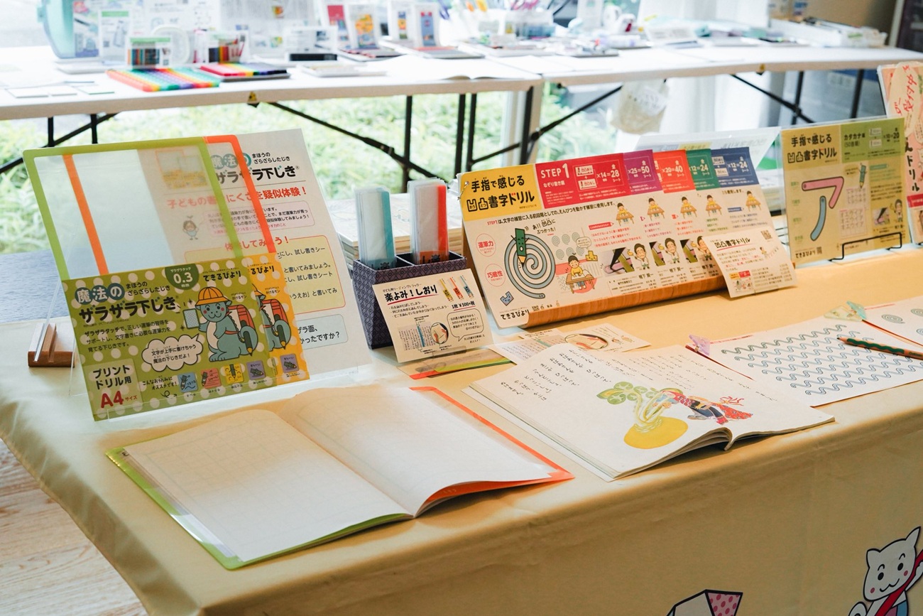 会場には、専門作業療法士による監修のもと開発した児童発達支援のオリジナル教材がズラリ。前回のイベントではお目にかかることのできなかった商品も登場していました。