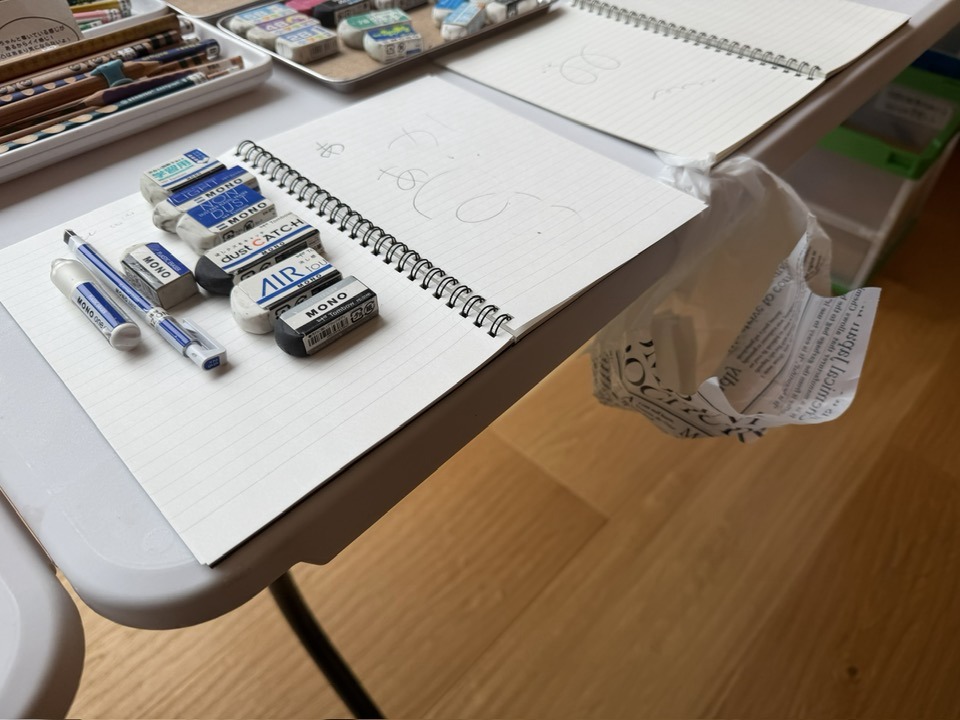 自社製品に限らず“良いもの”を紹介してくれるのが、できるびよりの面白いところ。この日も机にピタッと貼ることのできる便利な袋を見せてくださいました。「消しゴムのカスを集めるのに便利なんですよ。」「これ食卓でも活用できそうですね!」単なる物販に留まることのない貴重な体験の機会。日常生活にも取り入れることができるような発見が毎回あるので、大人も楽しめることが魅力です。