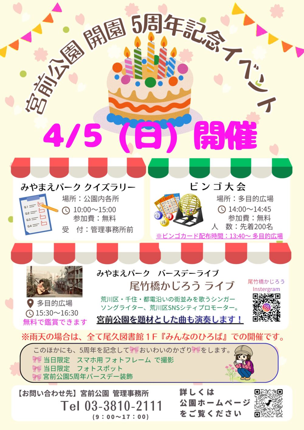 荒川区・宮前公園では、開園5周年を記念したアニバーサリーイベントが開催されます。