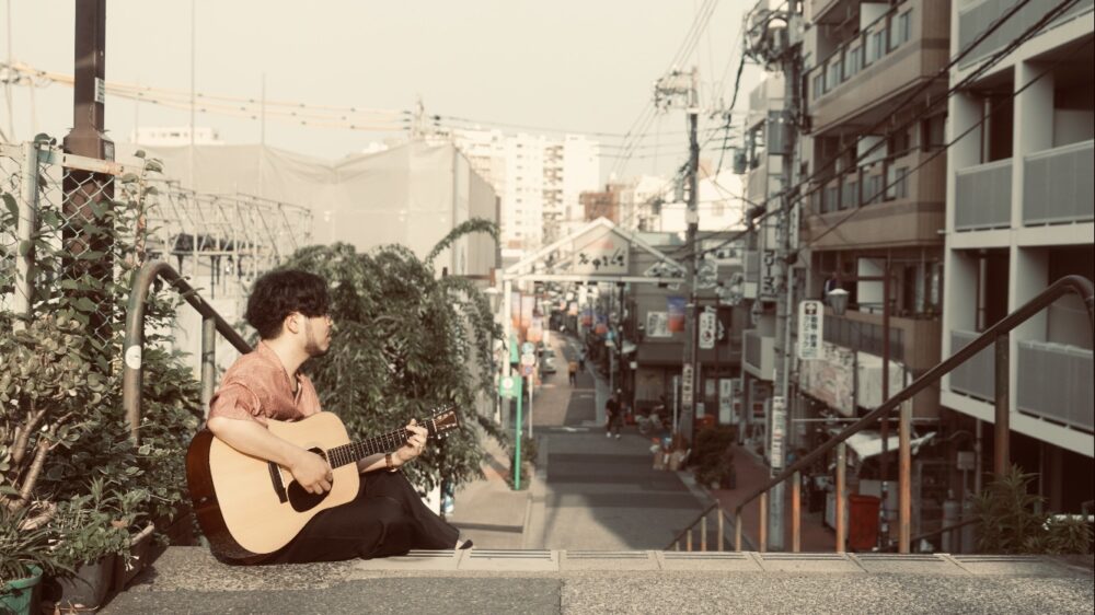 荒川区ゆかりのシンガーソングライター【尾竹橋かじろうさん】によるライブ。