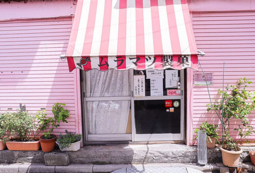 このたび荒川探訪がご紹介するのは、荒川区町屋4丁目に店舗を構える「ムラマツ製菓」。創業100年以上もの歴史を誇る、老舗のお菓子屋さんです。千代田線および都電荒川線(東京さくらトラム)町屋駅前から徒歩12分ほど。住宅街を歩いていくと、ピンクと白のストライプのテントが目に留まります。普段は写真撮影NGの店内。今回は特別に許可を得て撮影させていただきました。