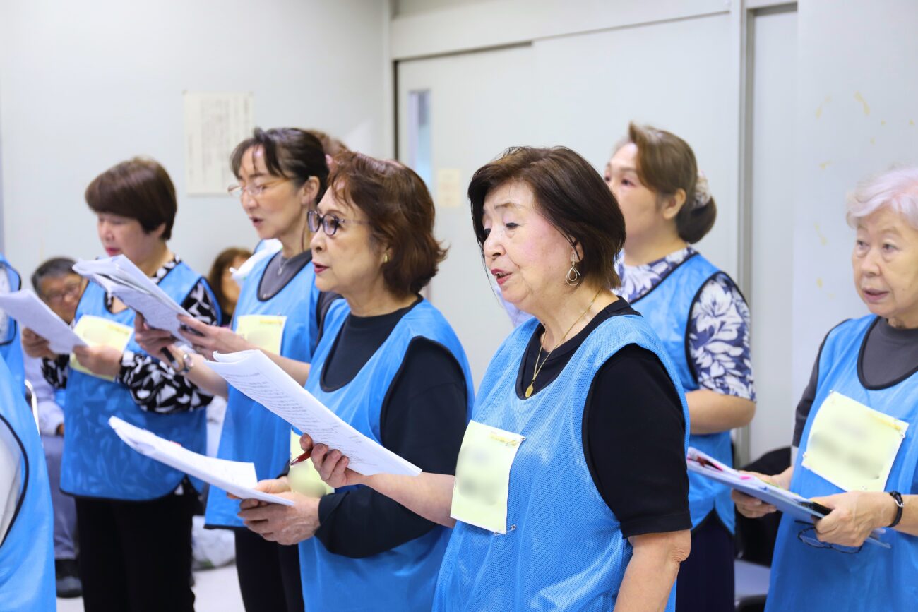 エレベーターを降りてすぐ聞こえてきたのは歌声。子供から大人までの元気な声が廊下全体に響き渡っていました。声の元への近づくと「荒川」と「もんじゃ」という単語が聞こえてきます。