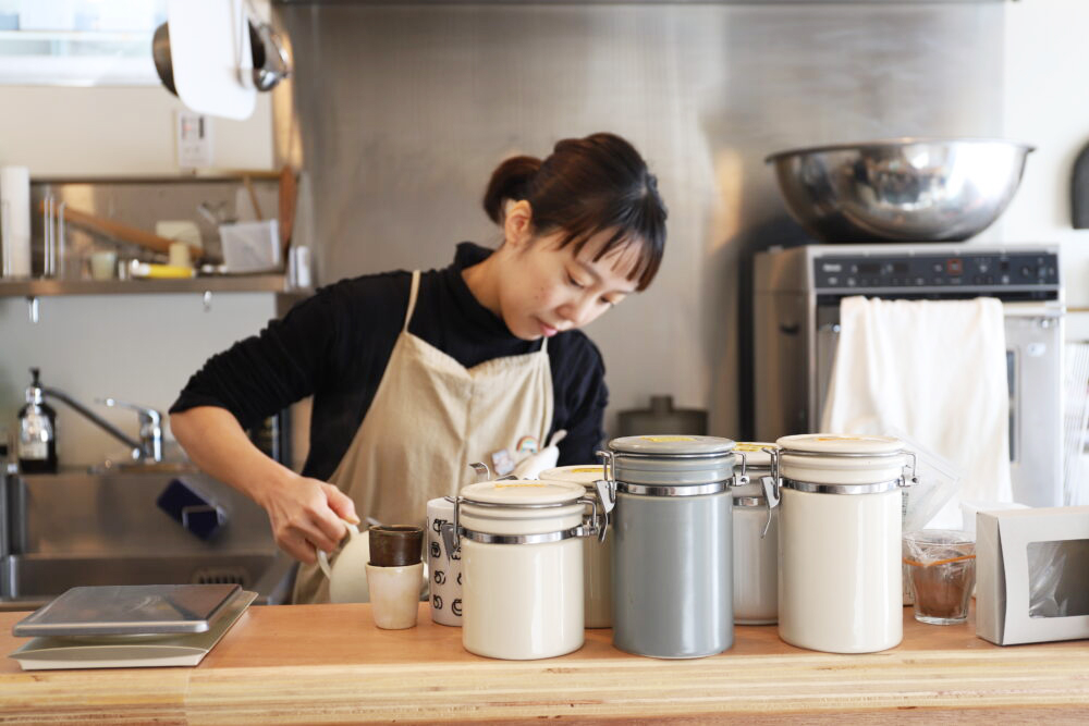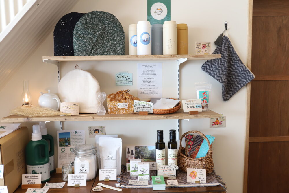 ドリンクやおやつだけでなく、貝殻から作った洗剤や能登の塩、パレスチナの石けん・オリーブオイルなど幅広く販売している「白と青と」。白桃さんが社会のことに目を向けるようになってから、様々な問題を放っておいてはいけないと感じるようになり、社会にある問題を知ってもらうきっかけとして関連する商品をお店に置いているそう。お店に訪れた人がその商品を見たときに、少しでも興味を持ってもらえればと思い販売しているそう。一つ一つの商品に対する白桃さんの思いがこもっており、人に気持ちを寄せる人柄が伝わってきます。
