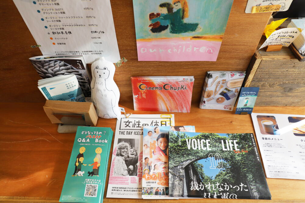 最後に、白桃さんに今後お店をどのようにしていきたいですか?と尋ねると「これからもお店を続けて、お店で様々なイベントを行って、色んな人の居場所になれば。」そして、「能登のことやパレスチナのことなど、自分から遠いと思っている問題が自分と関係していると感じるきっかけがこのお店にあれば。」と。これまでも哲学対話(哲学的なテーマに沿って様々な人と対話をしていくこと)や読書会などのイベントやワークショップなどを行っている「白と青と」。様々な人が集い、これからもっと多くの人の居心地のいい居場所になっていくでしょう。