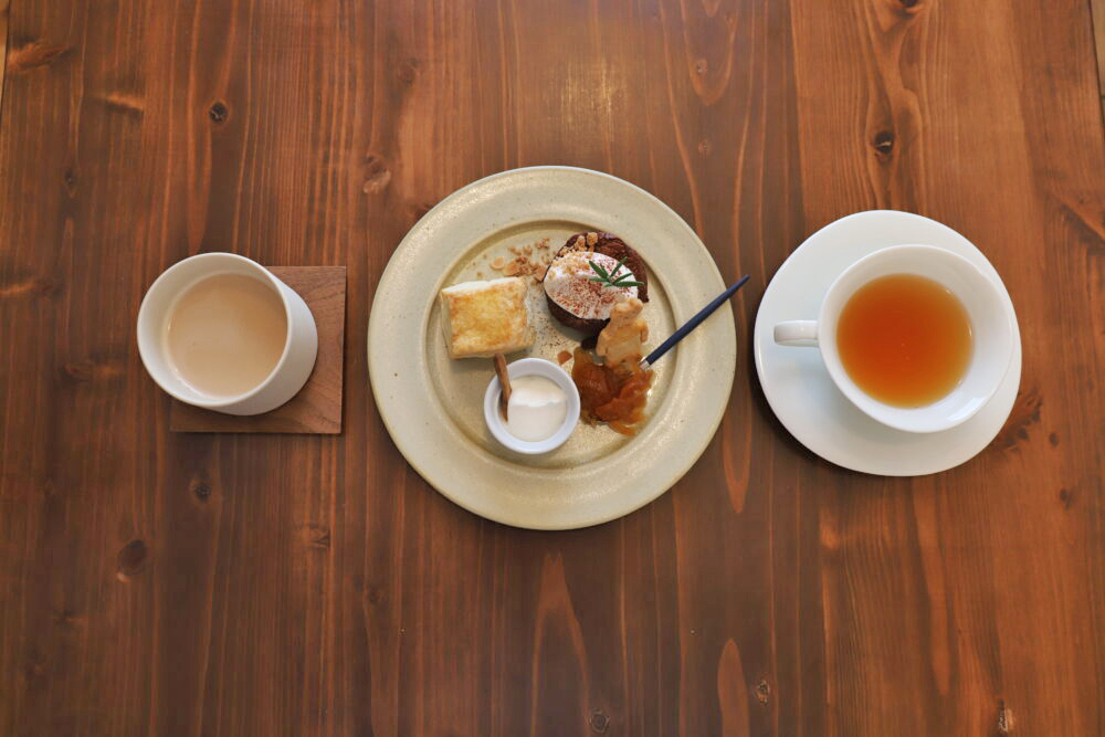一つ一つ丁寧に作っているからこその優しい味のおやつで、ゆっくり過ごしながら味わうのにぴったり。おやつとともに「ゆめわかば」という狭山茶を使った紅茶と季節限定の洋梨のチャイもオーダー。