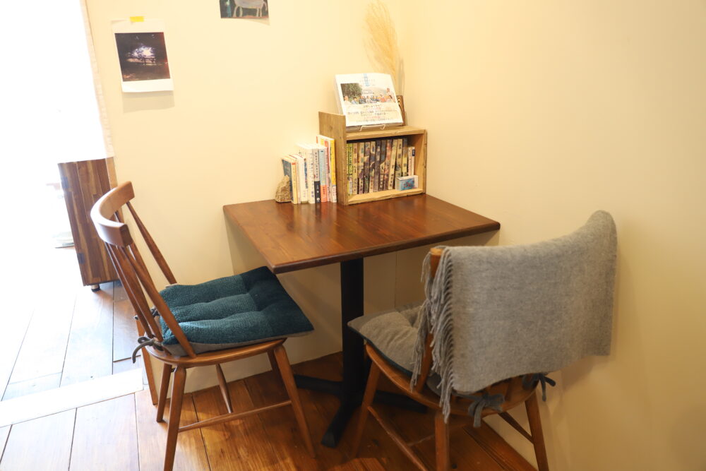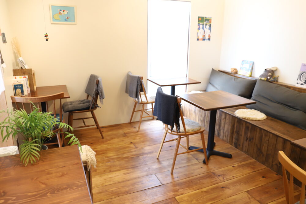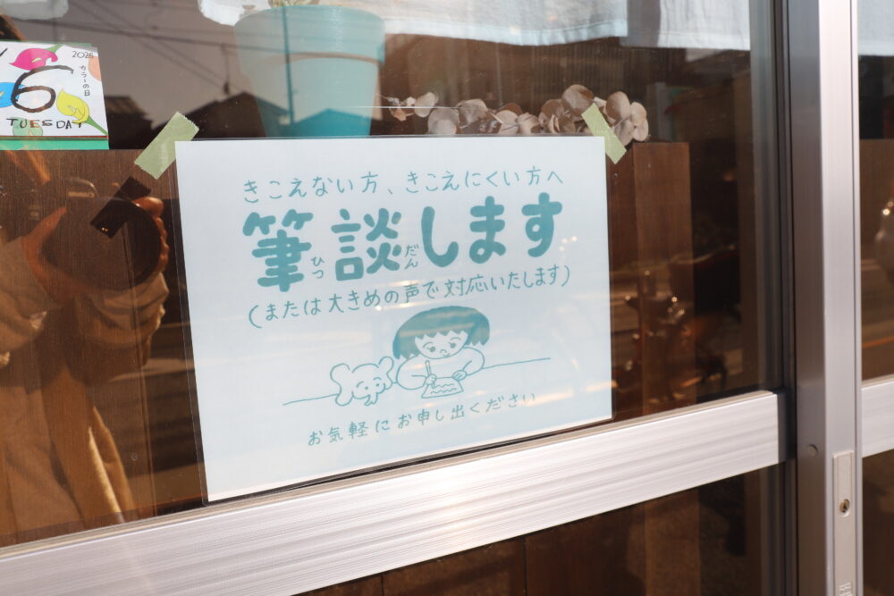 白桃さんは2児の母でもあります。「白と青と」の店名にはお子さんの名前が入っており、お店をやっていく上で、「子供のことを置いてけぼりにしないぞ」という自分自身の気持ちを込めたそう。お店も家族も自分のことも大切にする白桃さんの思いを感じました。そして筆談可・スロープあり・盲導犬OKなど、様々なお客さんに対しての配慮が沢山感じられる店内は、おひとり様でも親子でも友達同士でも居心地よく過ごせるお店になっています。