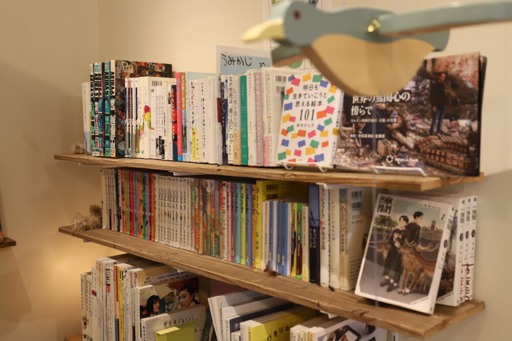 最後に、白桃さんに今後お店をどのようにしていきたいですか?と尋ねると「これからもお店を続けて、お店で様々なイベントを行って、色んな人の居場所になれば。」そして、「能登のことやパレスチナのことなど、自分から遠いと思っている問題が自分と関係していると感じるきっかけがこのお店にあれば。」と。これまでも哲学対話(哲学的なテーマに沿って様々な人と対話をしていくこと)や読書会などのイベントやワークショップなどを行っている「白と青と」。様々な人が集い、これからもっと多くの人の居心地のいい居場所になっていくでしょう。