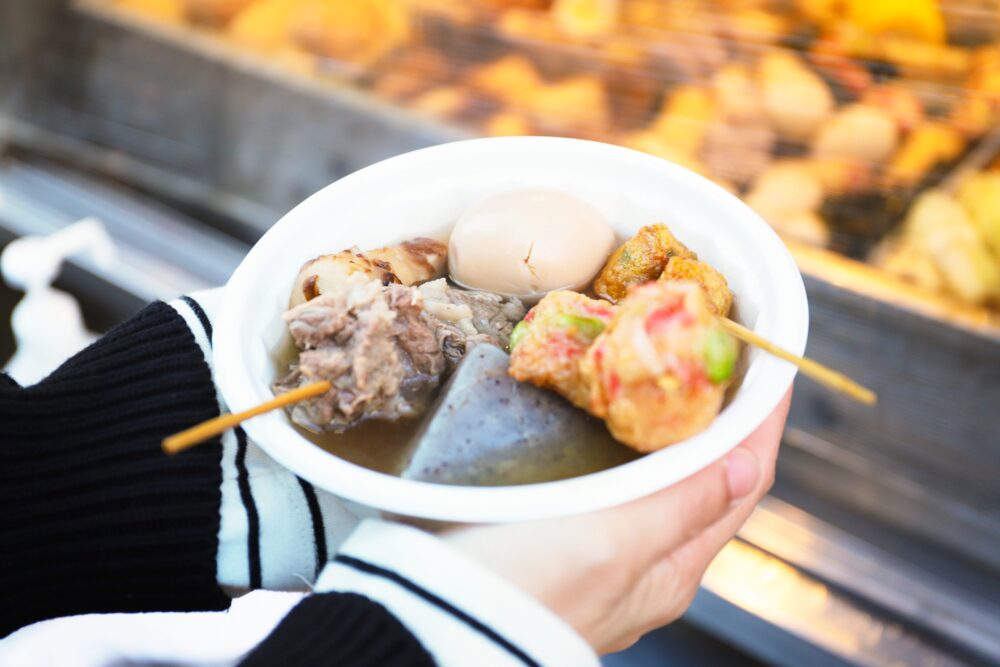 赤いのれんの後ろには湯気立つおでん、漂ってくるだしの香り・・・思わず足が止まる。