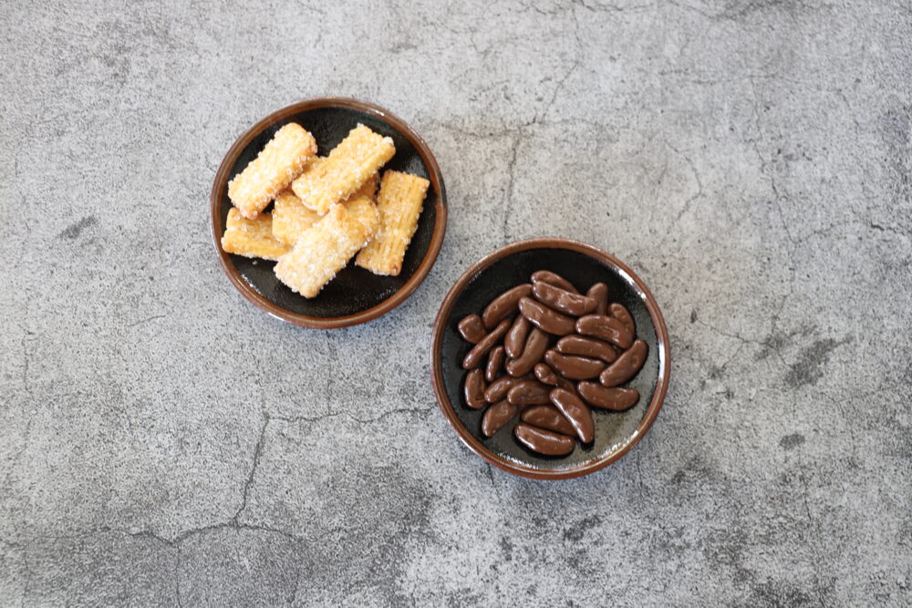 取材スタッフが個人的に購入した「柿チョコ」は、サクサクした柿の種の塩味とチョコレートの甘さのバランスが絶妙で、食べ始めると止まらない美味しさ。