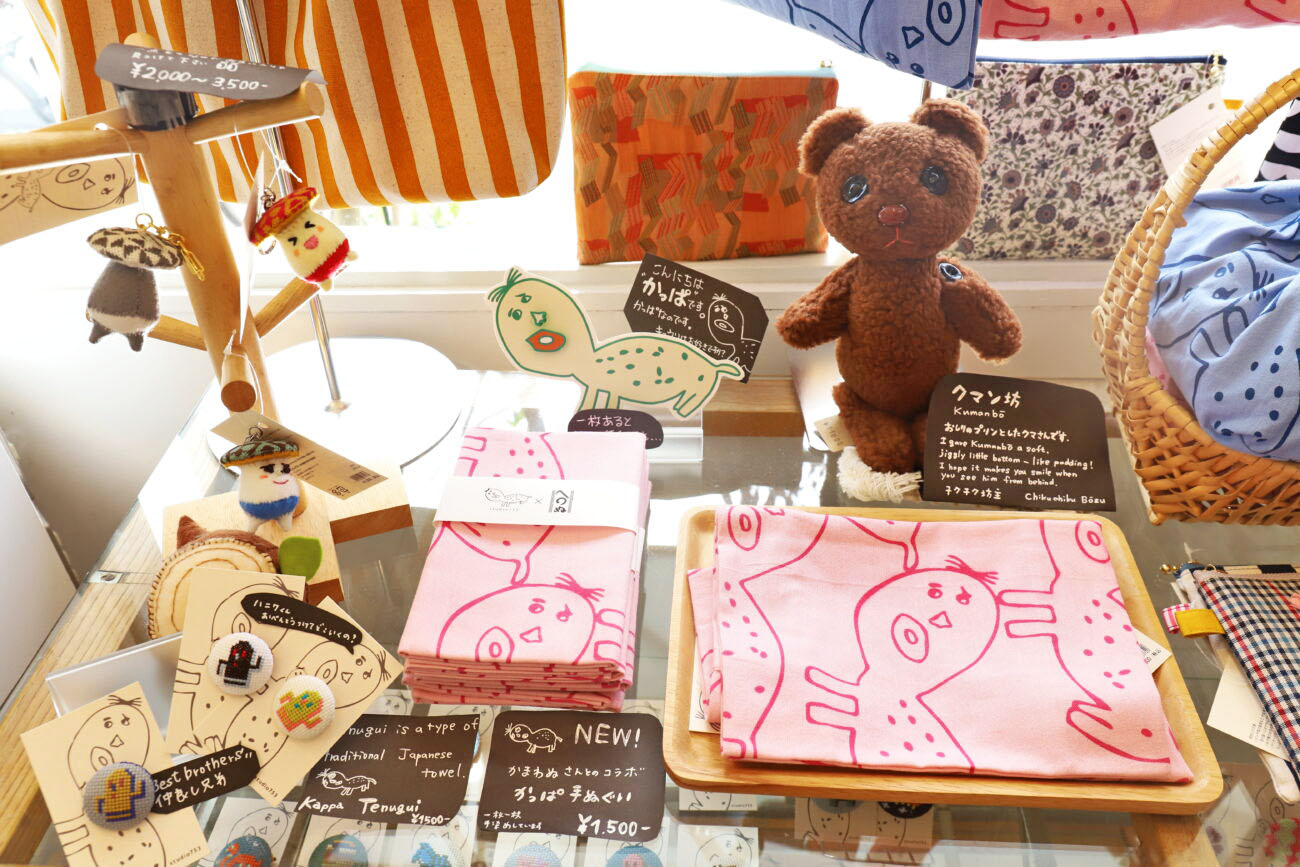 studio753では、この気まぐれかっぱをモチーフにした小物など、さまざまな商品が丁寧に手作業で作られています。